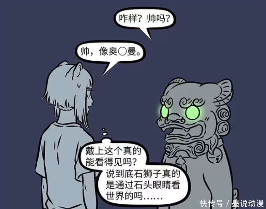 《非人哉》漫画版中,西王母自从来到人类世界后,那是对很多东西都感兴趣。除了吃美食之外,她还会戴美瞳。只是西王母不太专业万生优配,在戴美瞳的过程中,还砸到了小玉的头。石狮子小刘也戴美瞳,只不过是夜光美瞳。九月看到这样的石狮子,不禁疑惑,石狮子真是用石头眼睛看世界的吗?