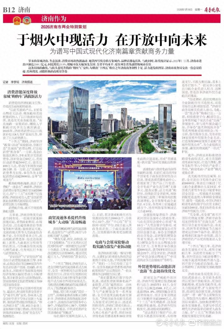 济南市商务局党组书记、局长武毅表示,全市商务系统将以更加开放的姿态、更加创新的精神、更加务实的作风,在大力提振消费、扩大制度型开放、推动贸易创新发展、高质量共建“一带一路”等方面聚焦发力,做强国内大循环,畅通国内国际双循环,加快构建现代化商务发展体系牛操盘,为谱写中国式现代化济南篇章贡献更大商务力量,为“十五五”时期商务高质量发展奠定坚实基础。
